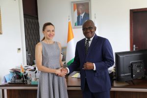 Le Président de l’Université Félix Houphouët-Boigny (UFHB), le Prof. BALLO Zié, a accordé une audience, ce mercredi 5 février 2026, à Martina BOROVAC-PECAREVIC, Cheffe de Délégation Adjointe de l’Union Européenne en Côte d’Ivoire. Cette rencontre qui s’est tenue au cabinet du Président s’inscrit dans la dynamique de consolidation du partenariat académique liant l’UFHB à l’Union Européenne, notamment à travers le programme ERASMUS+.