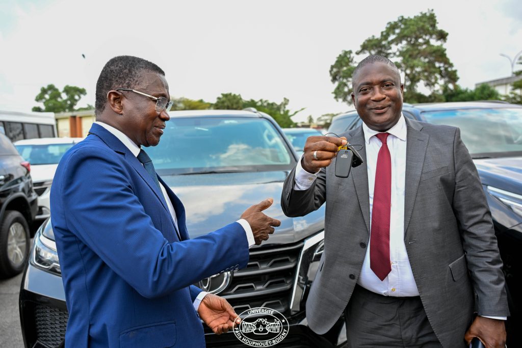 Cette dotation comprend 21 véhicules de service, 2 minicars et 10 motocyclettes. La cérémonie s’est tenue sous la présidence du Ministère de l’Enseignement supérieur et de la Recherche scientifique, représenté par le Directeur de Cabinet adjoint, Djimbala DIAKITE, qui a salué les efforts constants consentis par l’équipe dirigeante de l’UFHB.